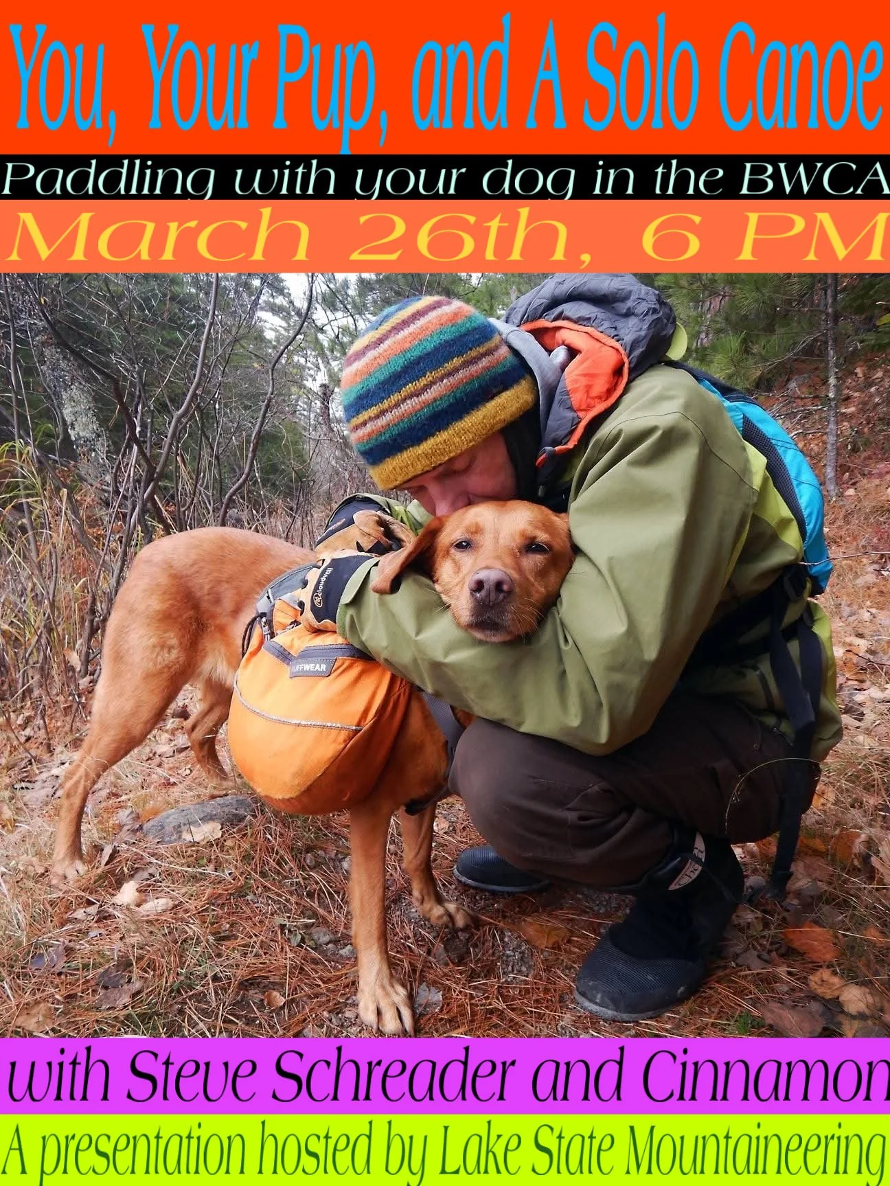 march 26th, 6pm / You, Your pup, and a solo canoe: BWCA solo canoeing with your dog with LSM shop owner Steve Schreader and store mascot cinna.