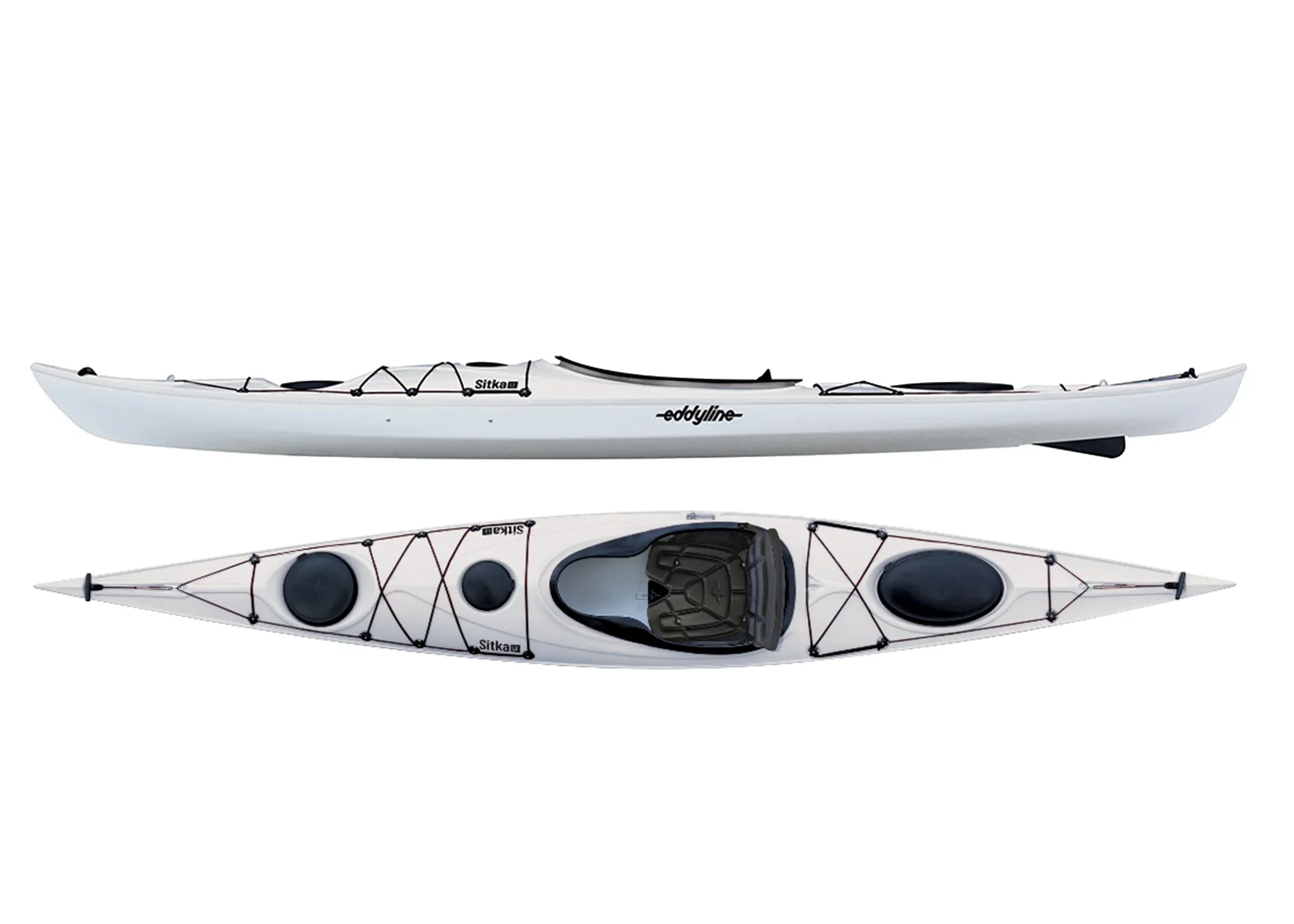 The removable cloth seat clips into place in seconds and consists of thick antimicrobial, marine grade foam, and UV-resistant mesh fabric, giving it excellent comfort and durability. An 8" bow hatch and 5.25" quarter-turn tankwell hatch provide easy access to most of the interior space. The cockpit features adjustable foot braces, a 6" accessory gear track and a self-draining seat pan. Bow and stern webbing carry handles provide comfort for straightforward two-person handling while perfectly balanced side carry handles make it easy for solo handling. The side handles also double as one-handed paddle holders. The raised seat provides good visibility and a dry ride, while the four scuppers allow for effective drainage of the cockpit and tank well. A stern drain plug allows for easy drainage of the interior space if needed.